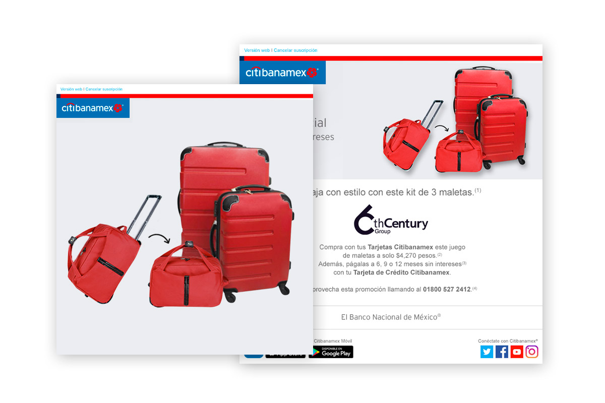 Passive promotion, production and distribution of 10,000 units of high-end suitcases for different marketing actions.